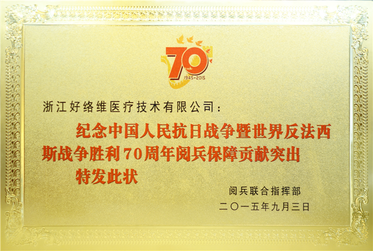70周年閱兵保障突出貢獻獎狀