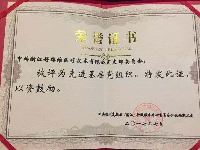 2017年7月28日下午,2017年江北兩新工委“兩優一先”表彰大會開幕,高新區(濱江)江北兩新工委書記周中華、行政服務中心副主任黃建民等領導出席會議并作講話。好絡維黨支部多年來秉持全心全意為人民服務的宗旨,黨務工作得到了上級黨組織和群眾的一致認可,被評為“先進基層黨組織”。