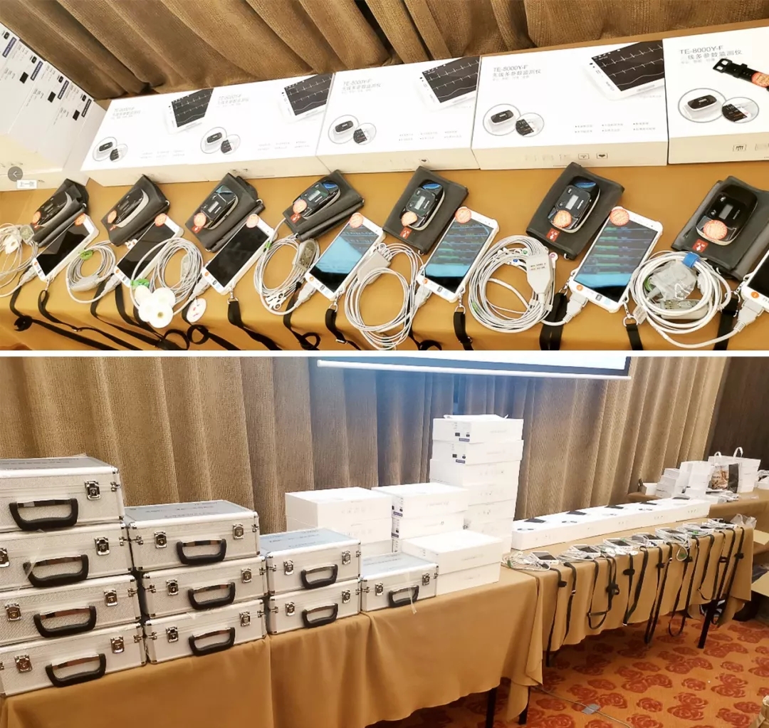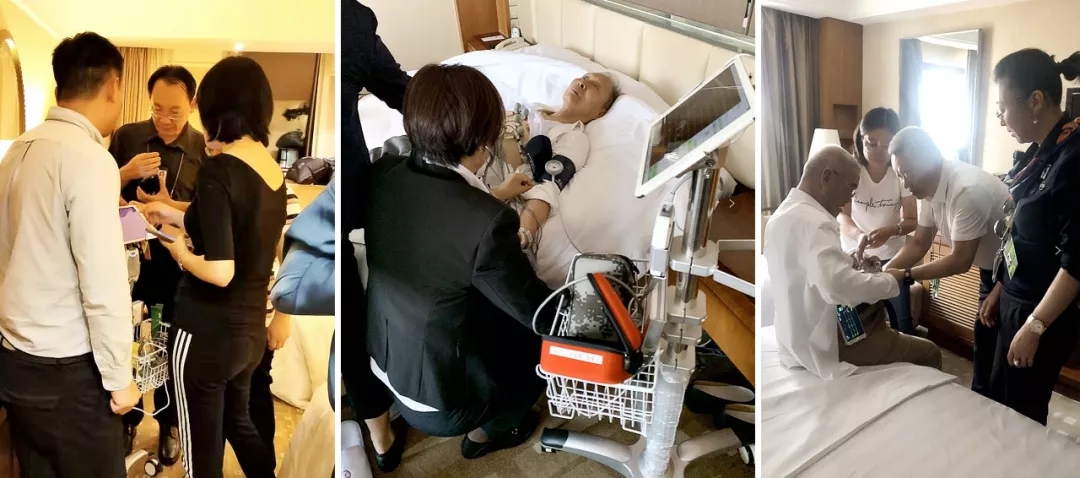 在參閱禮賓入住酒店后,好絡維保障小組配合分指醫療保障組完成了所有參閱禮賓的心電圖篩查、血壓測量、血氧監測等保障工作。平均年齡接近90歲的老同志,他們的身體狀況非常復雜,基礎生命體征監測成為了醫療保障組的工作重心。通過TE-9000Y十二導聯網絡心電圖機為他們做心電圖篩查,當發現異常時,進一步佩戴TE-5100Y-C動態心電記錄儀實時監測他們的心電和心率情況,“生命衛士”系統平臺通過AI引擎自動捕捉異常情況,一旦出現將立即發出告警,好絡維監控中心第一時間向分指匯報,并電話通知所在車號醫護人員;當篩查發現危急值時,立即進一步佩戴TE-8000Y-F無線網絡生理參數監測儀進行十二導聯多參數同步實時監測,密切關注參閱禮賓的心電變化情況,并第一時間向上匯報。