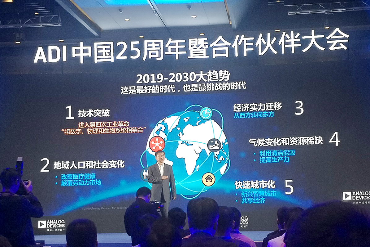 2019年10月24日,Analog Devices, Inc.(以下簡稱ADI)在江蘇無錫市舉辦“ADI中國25周年暨合作伙伴大會”。產業融合、相互滲透,ADI搭建連接現實與數字世界的智能化橋梁,與中國客戶攜手25年,在工業、通信、交通、醫療,消費電子每一個領域都留下了共同推動產業創新的足跡。