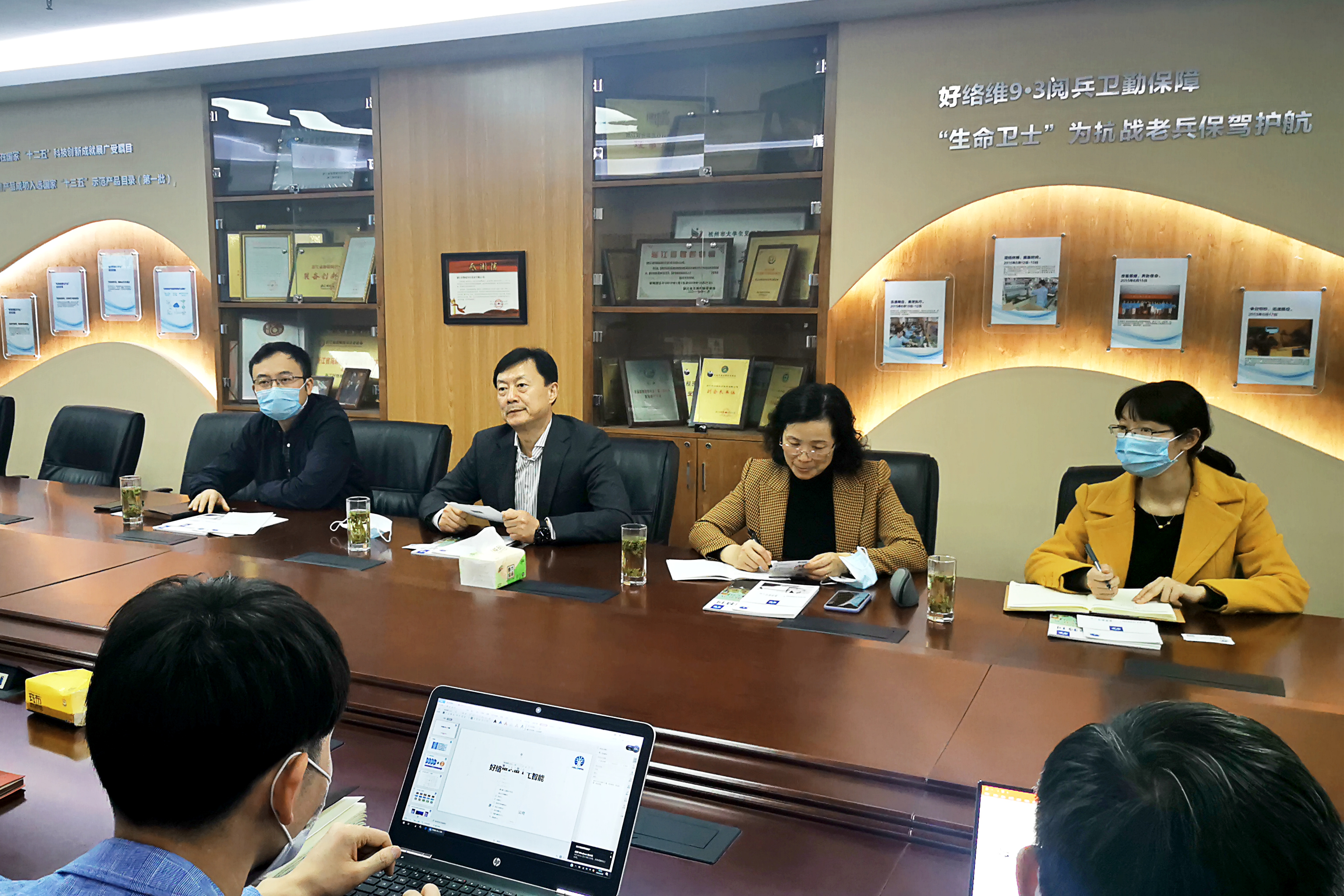 好絡(luò)維董事長(zhǎng)孫斌帶領(lǐng)執(zhí)行副總裁兼首席運(yùn)營(yíng)官李宗燦、副總裁兼研發(fā)生產(chǎn)事業(yè)群總經(jīng)理顧林躍、副總裁兼全球交付事業(yè)群總經(jīng)理倪志剛等公司高管團(tuán)隊(duì)與省科技廳領(lǐng)導(dǎo)們進(jìn)行了深入交流,就好絡(luò)維公司戰(zhàn)略、目前企業(yè)發(fā)展?fàn)顩r、科技創(chuàng)新成果、前沿亮點(diǎn)等方面作了詳細(xì)匯報(bào),針對(duì)好絡(luò)維可穿戴設(shè)備、醫(yī)養(yǎng)結(jié)合產(chǎn)品、大數(shù)據(jù)及人工智能應(yīng)用等領(lǐng)域做了重點(diǎn)演示。
