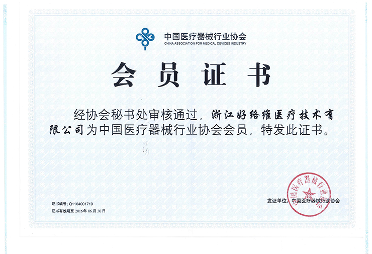 中國醫(yī)療器械行業(yè)協(xié)會會員證書