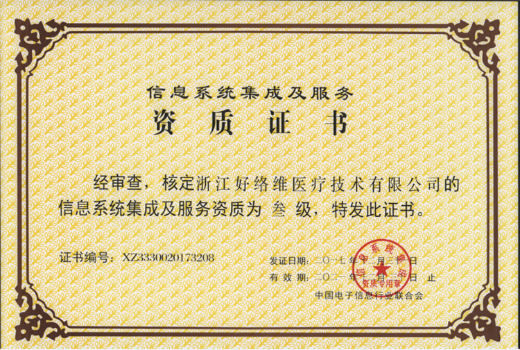 信息系統(tǒng)集成及服務(wù)資質(zhì)證書