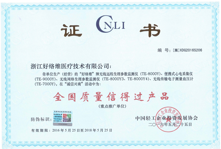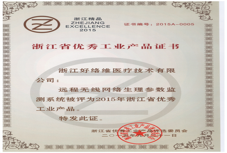 浙江省優(yōu)秀工業(yè)產(chǎn)品證書